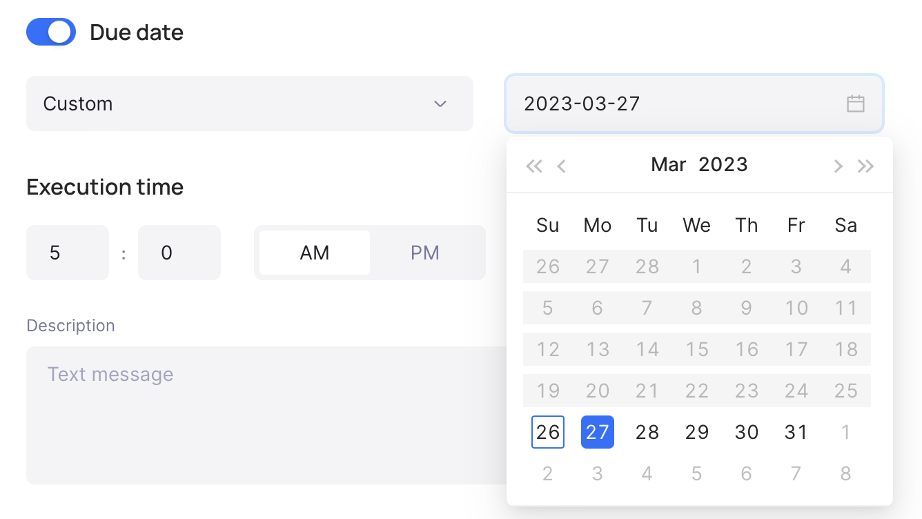 You can send payment instantly or select the later date for the payment. Use our presets or select a desired custom one.