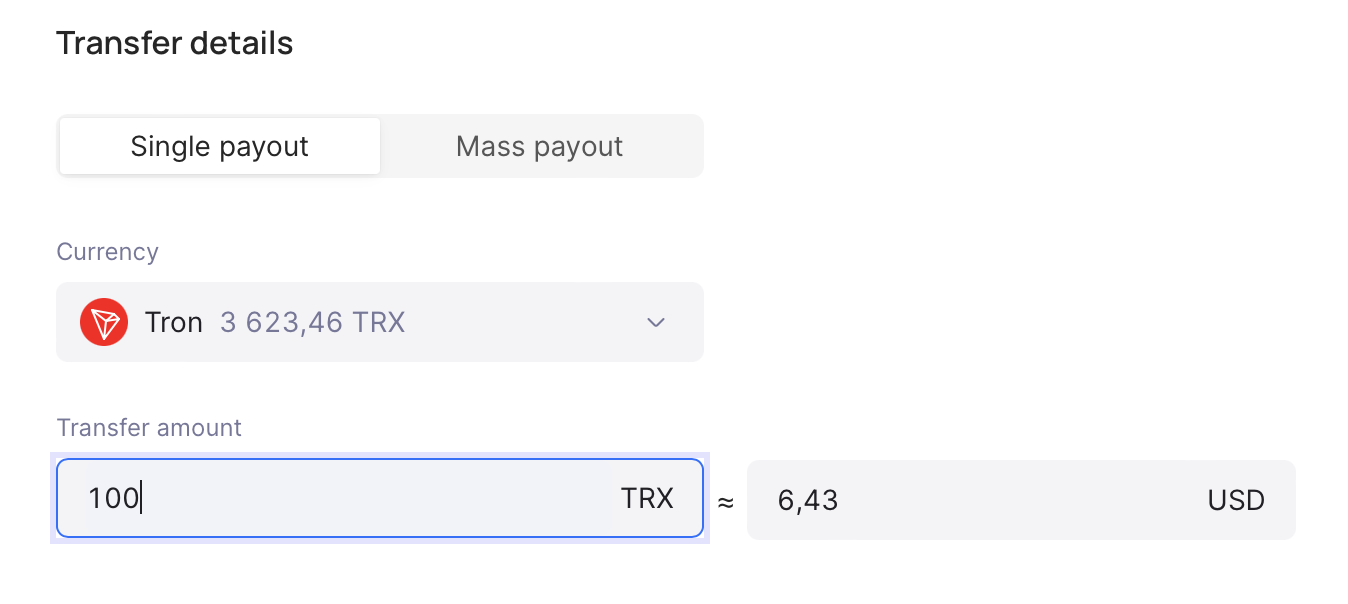 Select "Single payout" and specify an amount that you want to transfer.